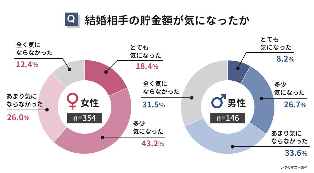 全国の既婚男女500人に「結婚する際、結婚相手の貯金額が気になりましたか?」と聞いたところ、回答は以下のようになりました。