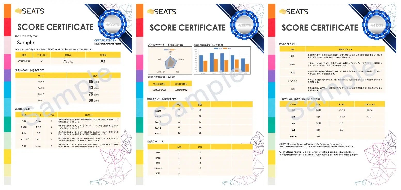 SEATSは、株式会社ジージーとアイードが共同開発し、全国の中学・高等学校向けに販売するスピーキングテストです。開発には一般社団法人次世代教育ネットワーキング機構が関わり、教育現場が抱える課題を解決するためのソリューションとしてSEATSを実現しました。
