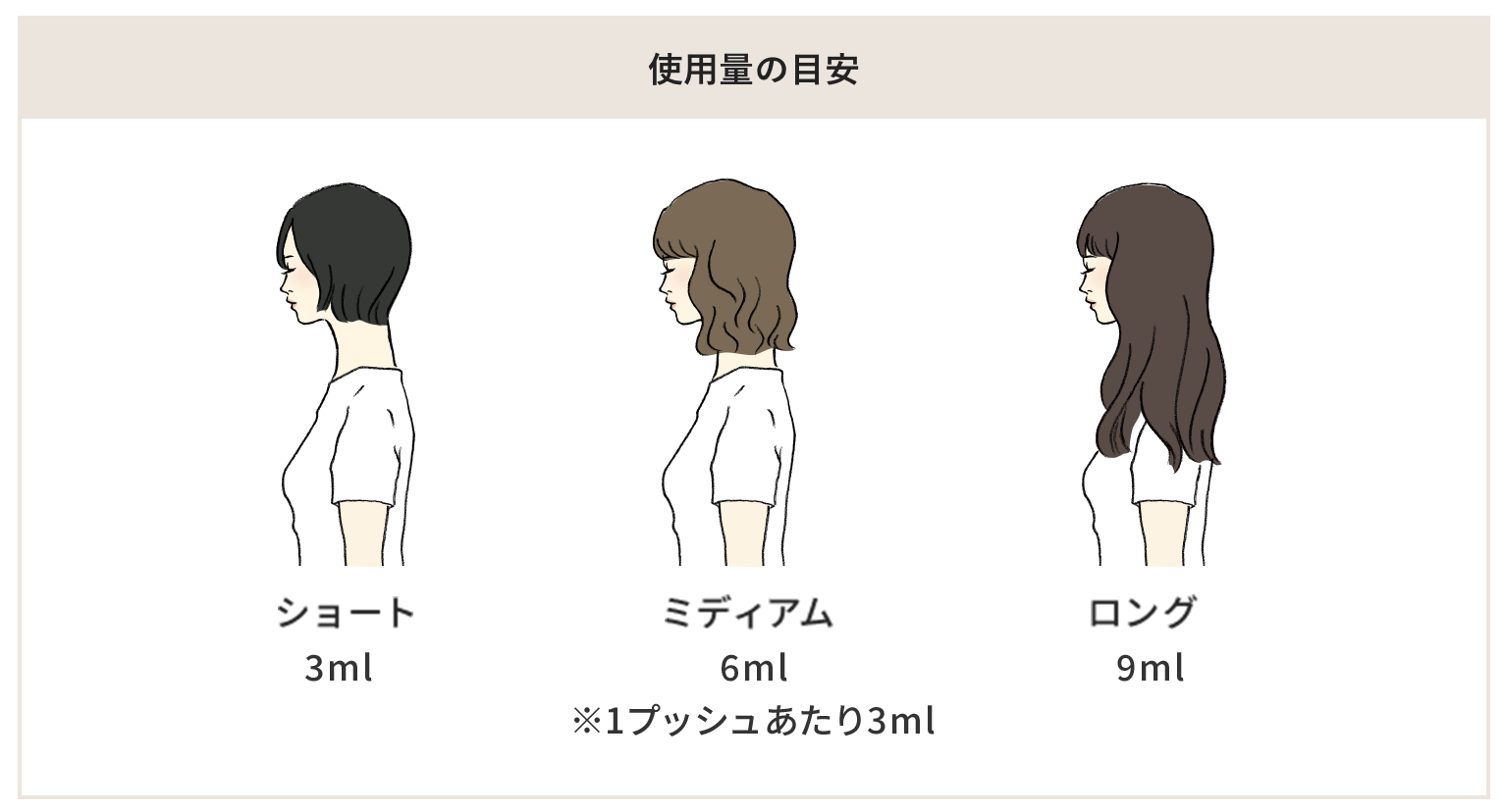 1. 髪と地肌を十分に濡らしてから、シャンプーを手に取り髪全体に塗布してください。