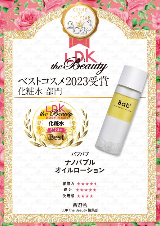 【2023年 ベストコスメ賞を受賞!】攻めの毛穴ケアシリーズBab² の「ナノバブルオイルローション(化粧水)」が「LDK the Beauty」で化粧水部門のコスメ・オブ・ザ・イヤーを受賞!