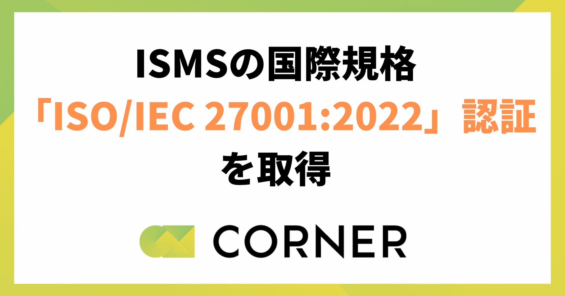 プロフェッショナルブティック事業を運営する株式会社コーナー(所在地:東京都渋谷区 代表取締役:門馬 貴裕、以下コーナー)は、ISMS(情報セキュリティマネジメントシステム)の国際規格「ISO/IEC 27001:2022」認証を取得したことをお知らせいたします。