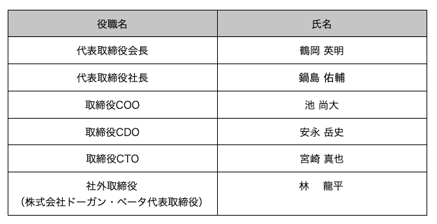 今後の当社の役員体制は以下の通りとなります。