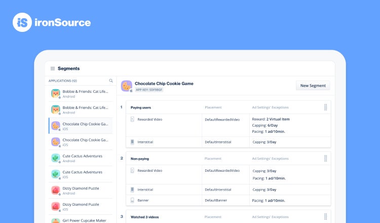 ironSourceがダイナミックセグメントをリリース - マネタイズにおけるユーザーセグメント戦略のリアルタイム最適化を実現