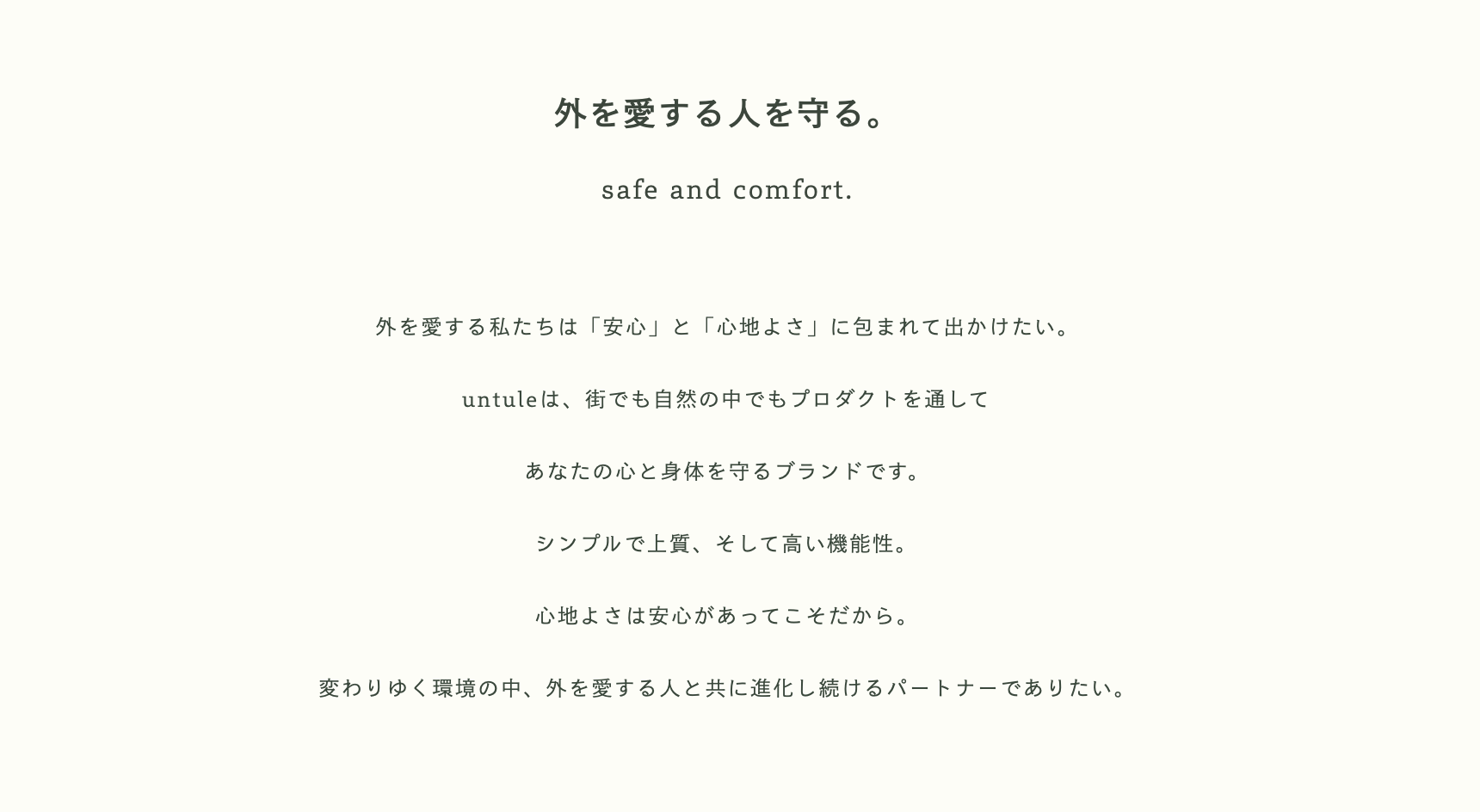 株式会社キャロットカンパニー(本社:大阪市中央区、代表取締役CEO:吉田剛)から展開する外を愛する人を守るブランド「untule(アントゥーレ)」が2023年2月1日(水)より公式オンラインサイトをスタート致します。
