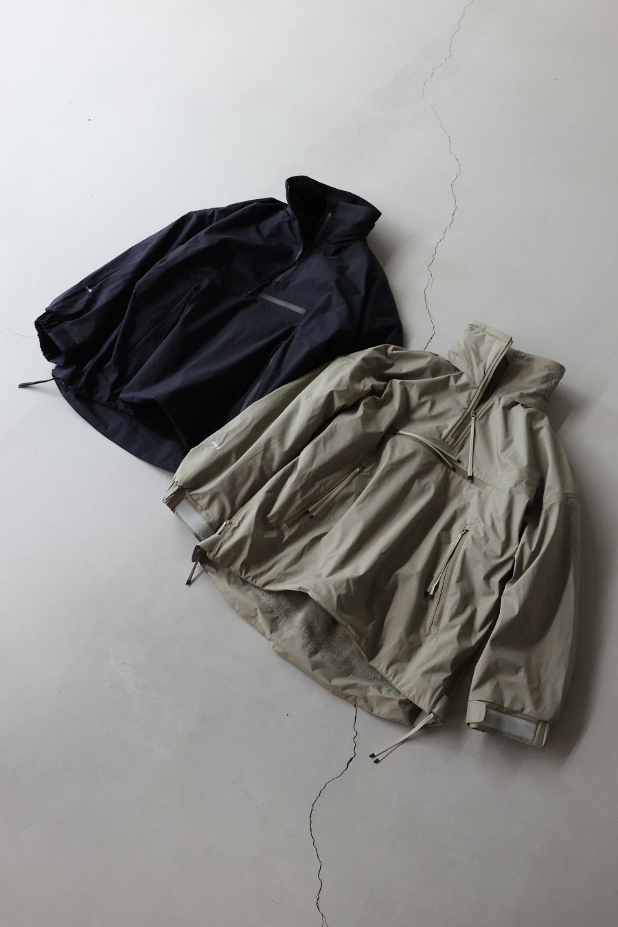 商品説明:BRITISH PCH THERMALSMOCKからインスピレーションを得てデザインされたアイテム。両脇は裾から腕にかけてダブルジップの使用になっており、裾を開けるとスリットに、袖の方から開けると腕を出しての着用が可能。首元にフードが収納された2WAY仕様です。