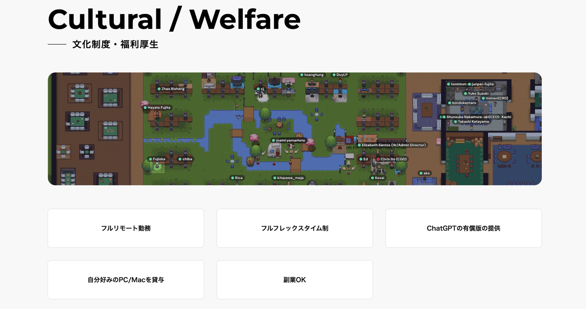 完全リモートワークを採用しており、場所に縛られず、自宅や好きな場所から働くことが可能です。 また、フルフレックスタイム制を導入しているため、ライフスタイルに合わせた働き方ができます。