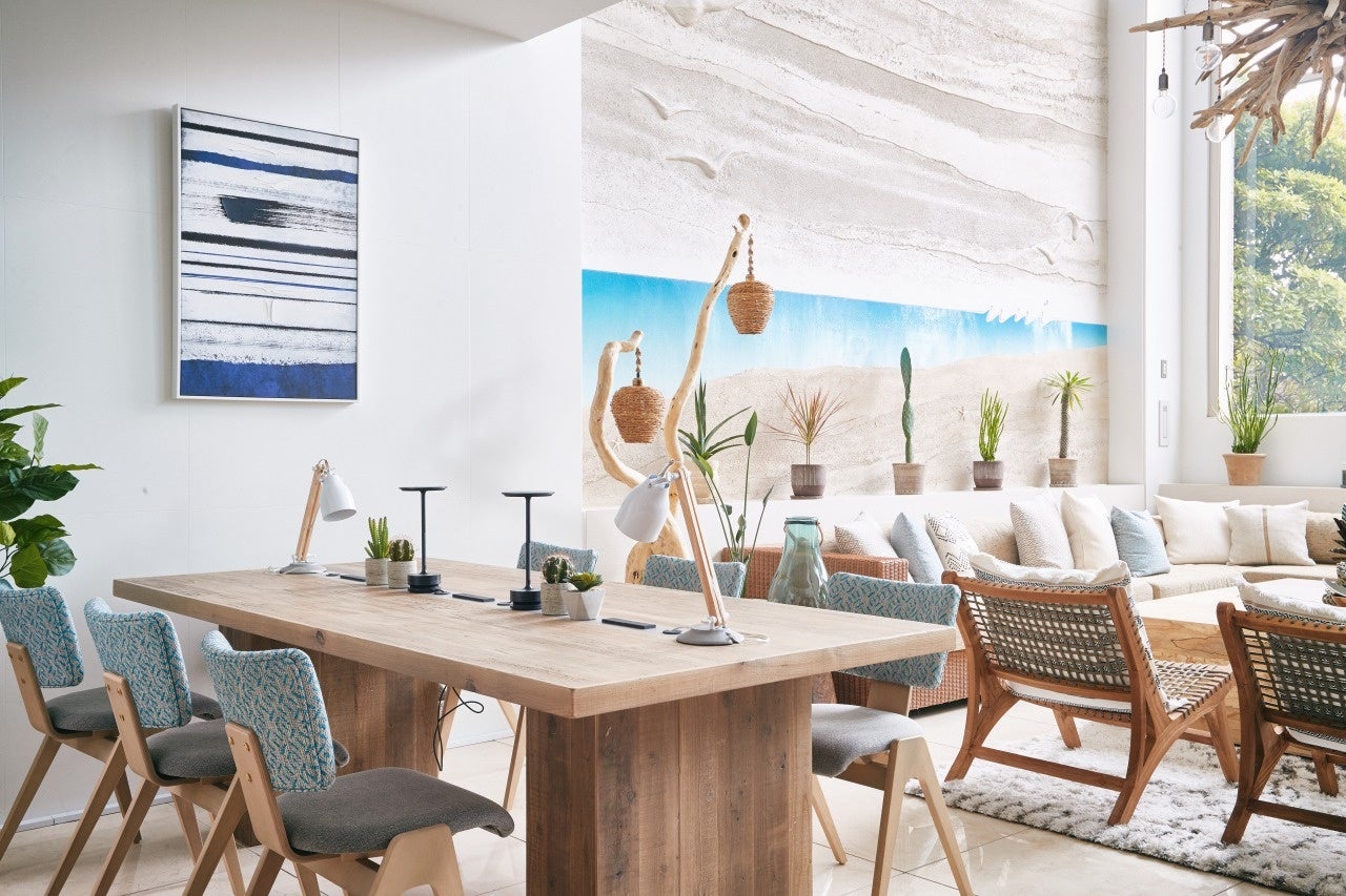 開放的な吹き抜けと地元のアーティストの作品が散りばめられたリゾートな空間SANDBARで開催される、umi conexión vol.2 “It‘s HAYAMAtic!”は、