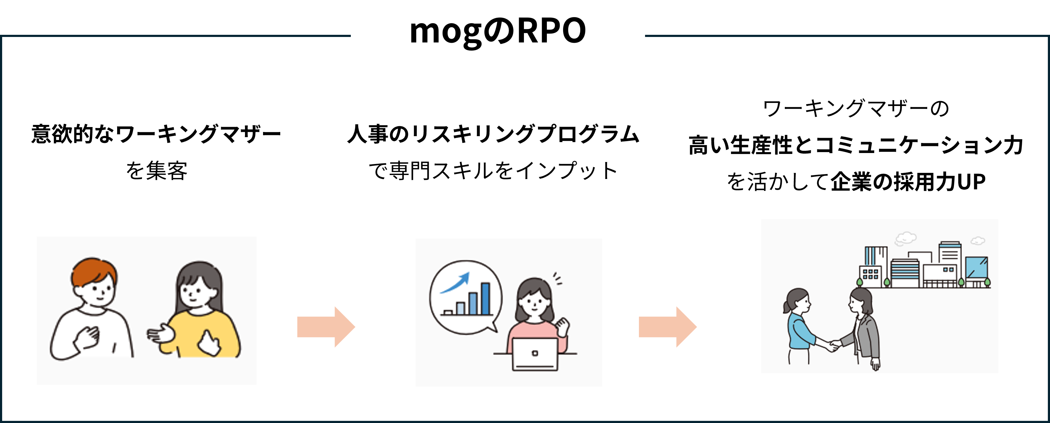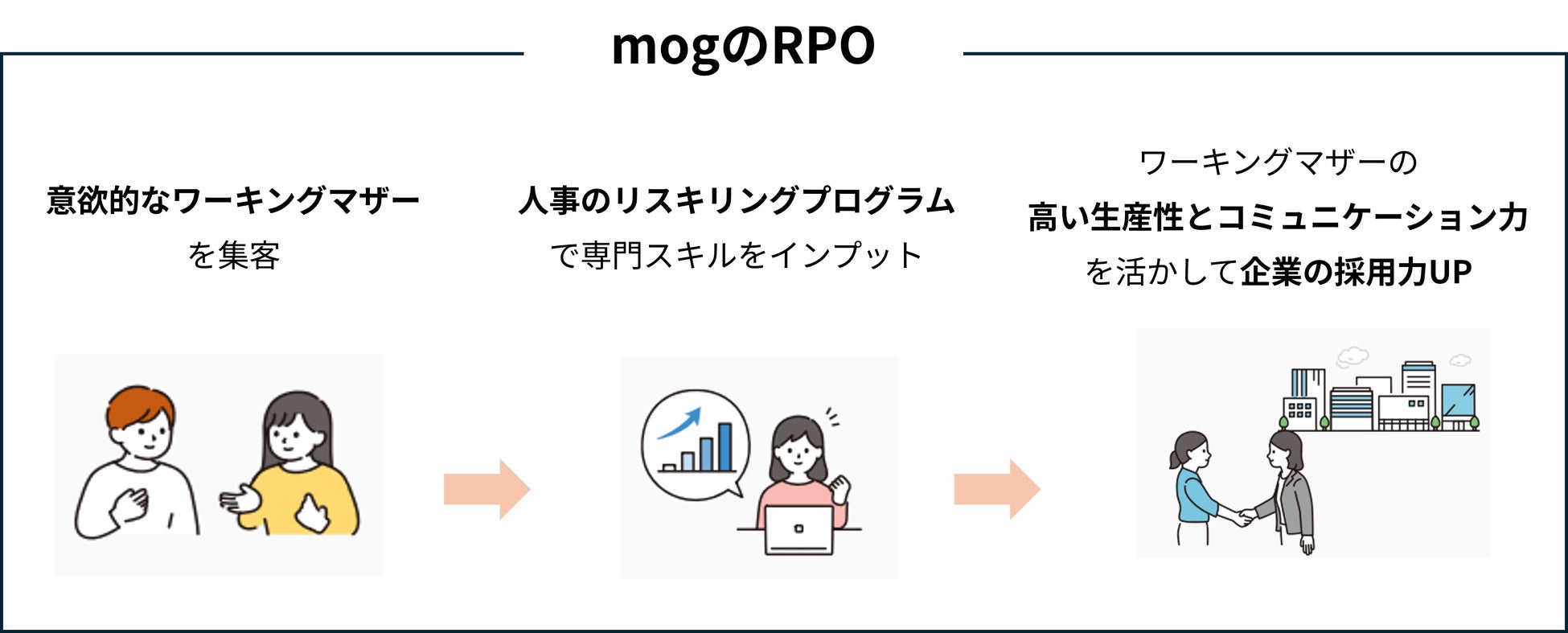 mogは、意欲的なワーキングマザーに特化したキャリア支援を展開しており、ワーキングマザーの生産性高く働くための段取り力などの特性を活かすことで、従来のRPOサービスにおける不満や課題が解決可能であると考え、本サービスを開始しました。