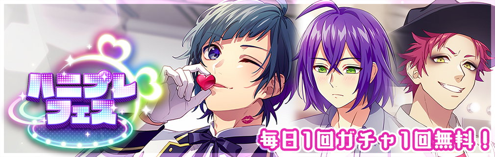 2月1日(火)より、期間限定で人気キャラの染谷勇次郎、塔上沙良、DAIの3人が登場する「ハニプレフェス」を開催いたします。
