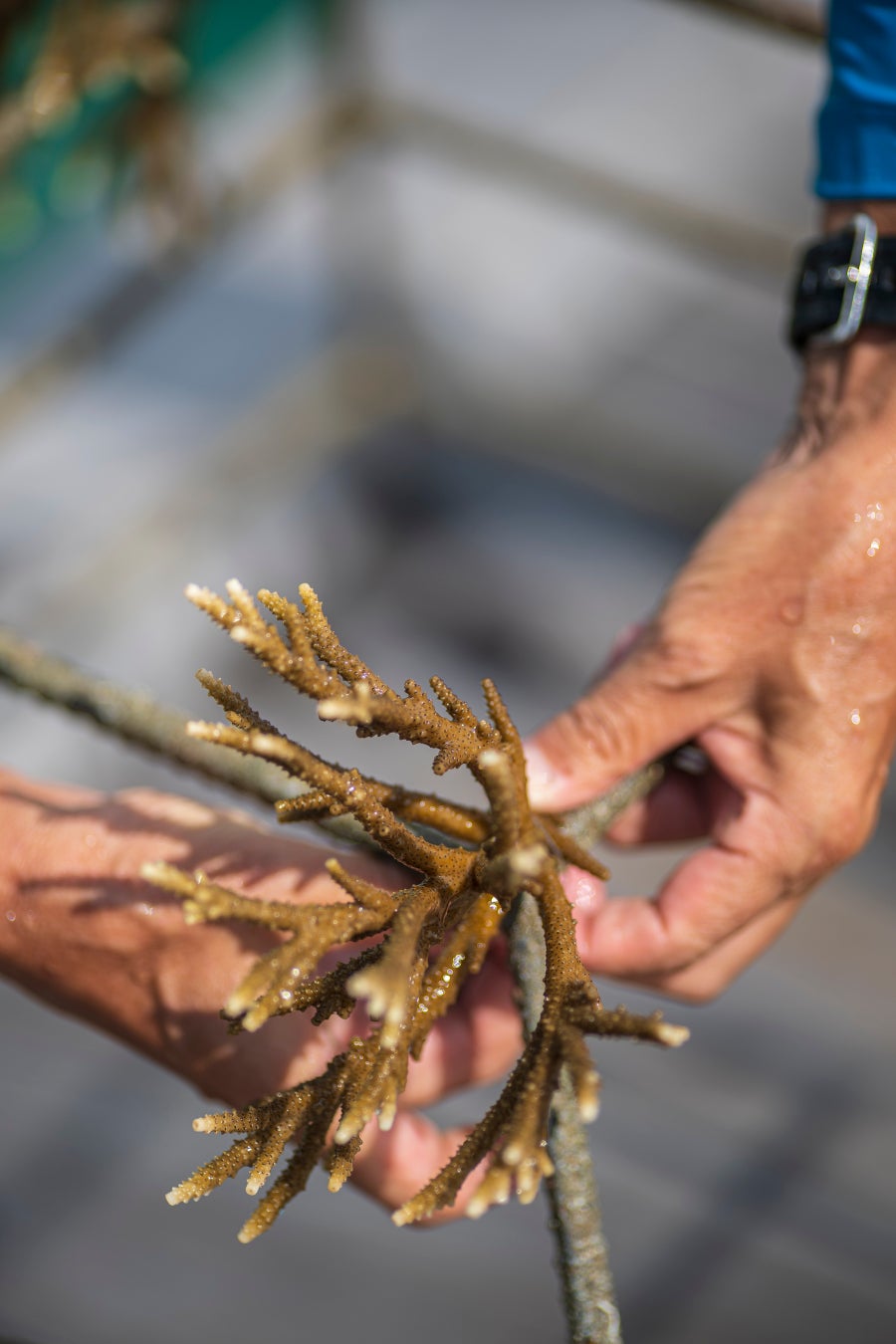 これには「コーラルガーデニング」と呼ばれる手法が含まれており、サンゴの断片をロープ式の養殖場や育成用ラックで約12か月間育てた後、再び自然のサンゴ礁へと移植します。自然の基盤(サンゴなどの生物が付着・成長するための海底の表面や素材)が不足している場所では、フレームやボトルリーフユニット、コンクリートスラブ、フィッシュドームといった人工構造物を用いて新たな生息地を創出し、海洋生物多様性を高める取り組みも行っています。