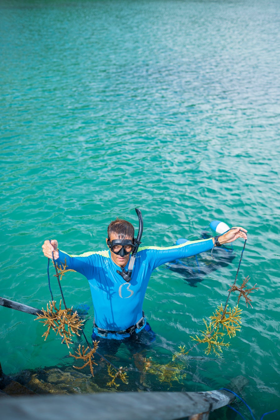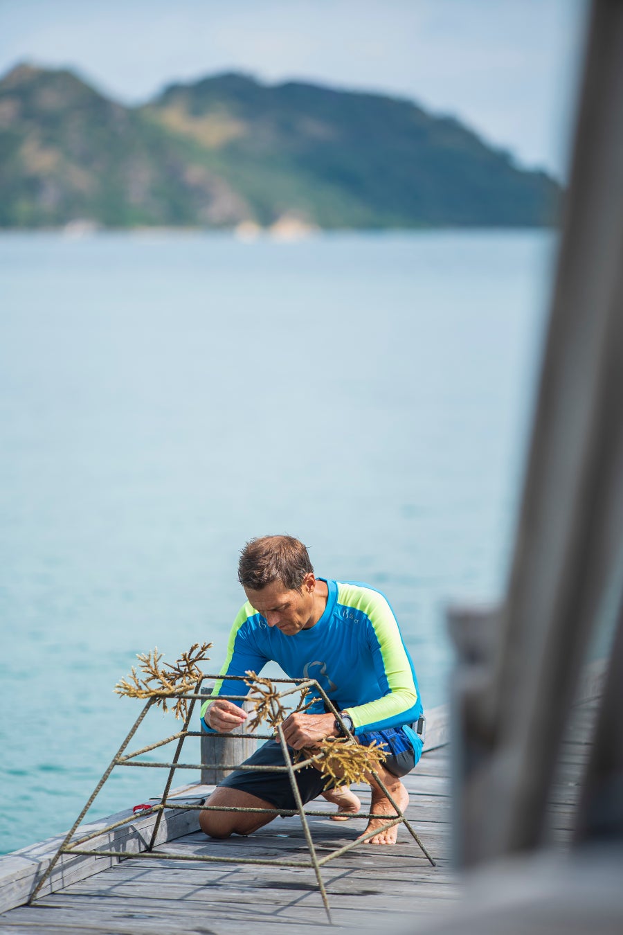アヤナ コモドの環境保全活動の中心となるのは、2,250平方メートルに及ぶサンゴ礁の再生プロジェクトです。これまで325平方メートル分のサンゴを、さまざまな技術を用いて自然の海へと移植しました。養殖場で育成したサンゴ片を実際のサンゴ礁に移し、健全な生態系の回復を目指しています。