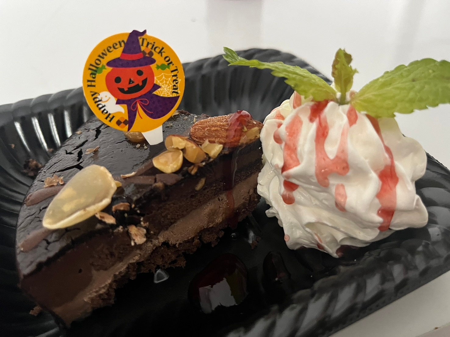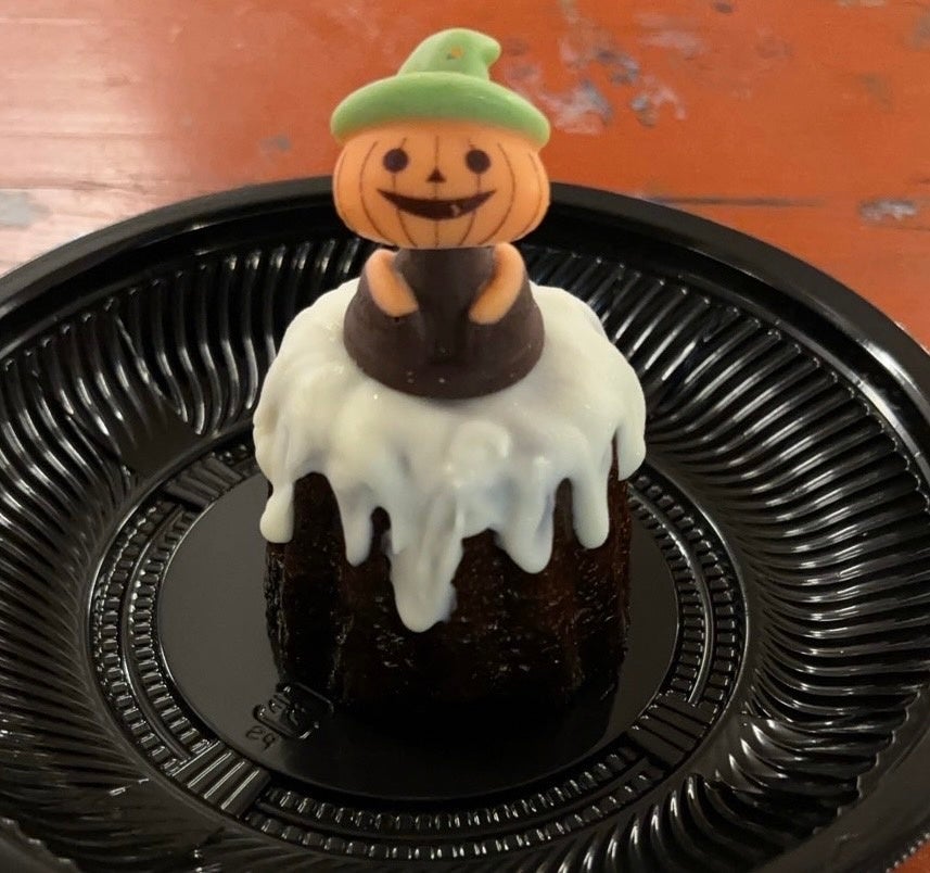 ドイツ語で木の小屋を意味する「ヒュッテ」をハロウィン仕様の装飾にしております。