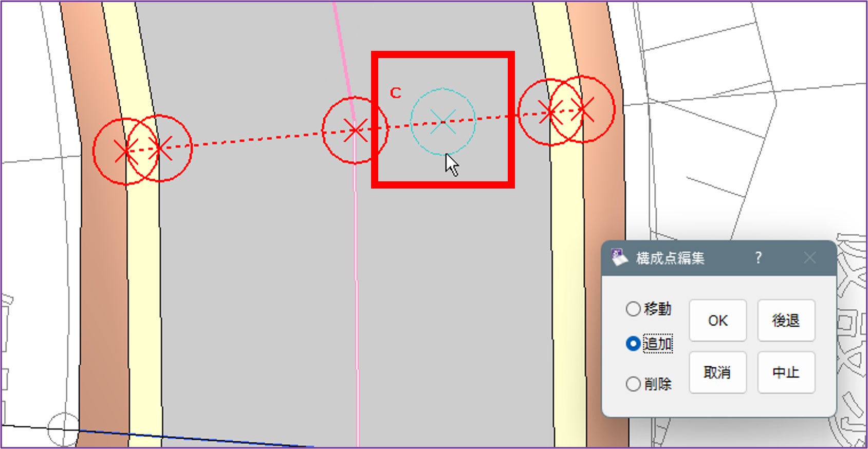 横断変化断面を追加する際に、構成点の外側だけでなく、内側にも構成点を追加できるよう対応いたします。
