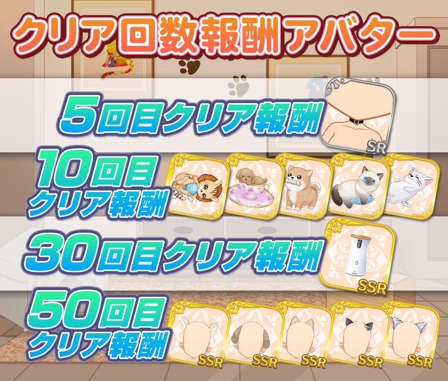 クリア回数に応じて、ペット~出会い編~限定の豪華報酬をゲットしちゃおう♡