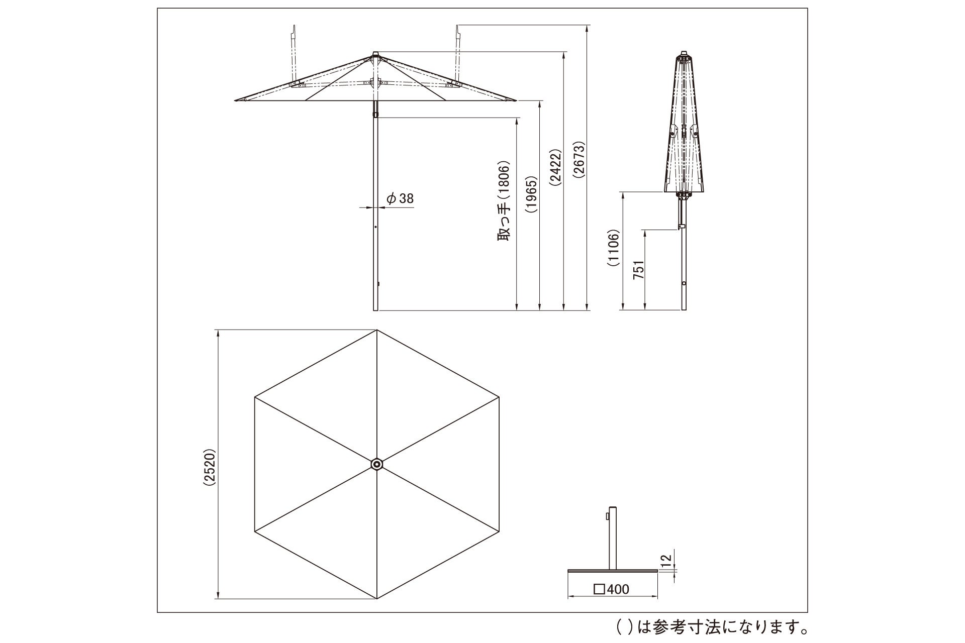 本体一式 | 傘最大幅 2500×H2422 ポールφ38 | 98,000円 (税込107,800円) |