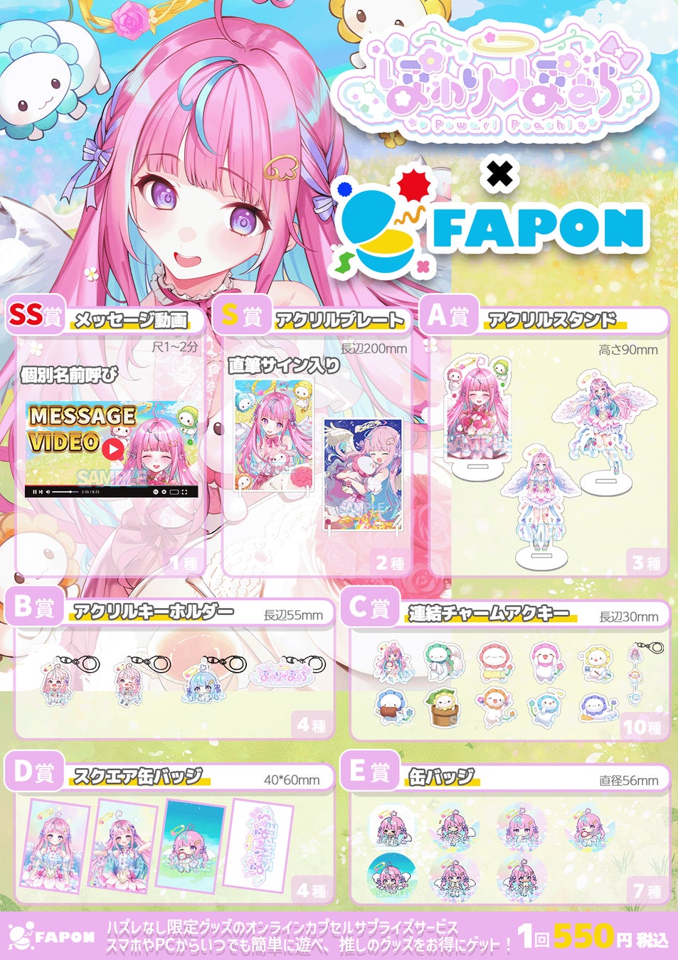 VTuber事務所として初となる自社オンラインくじ『FAPON』にて、910inc専属バーチャルYouTuberぽわり♡ぽあちが誕生日タイアップを展開。