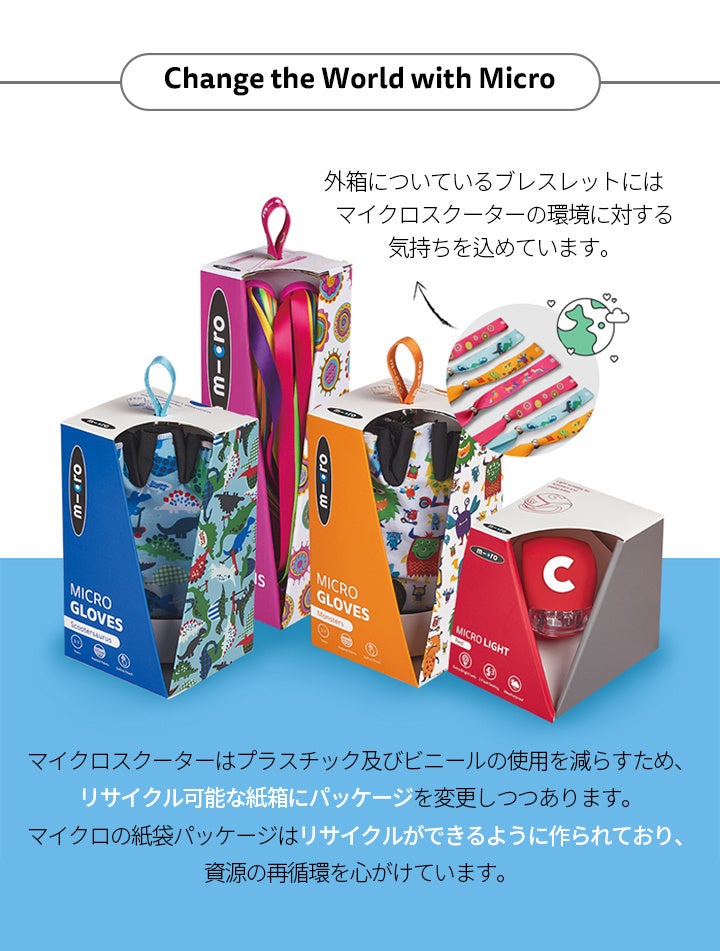マイクロスクーターには安全に配慮したデザイン性の高いさまざまなアクセサリーがあります。