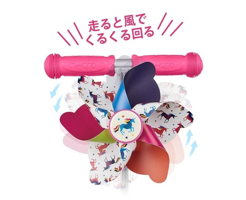 キックボードハンドルの中央に装着するウィンドミルはキックボードに乗って走ると回転し、ライディングの楽しさをUPさせます。この他にもマイクロスクーターにはキックボードやインラインスケートに合わせる様々なアクセサリーがあります。