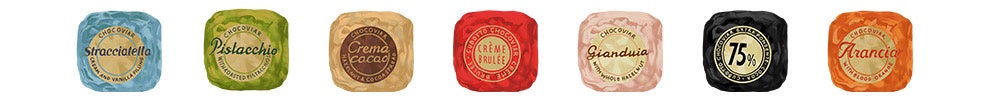 クリーミーでバターのようにリッチなバニラチョコレートのフィリングに、クランチーなカカオニブを混ぜ込み、ミルクチョコレートのシェルに包んで、ミルクチョコビアグレインをトッピングしました。カカオニブの特徴的なカリカリとした食感とカカオ感が、ミルキーでクリーミーなフィリングとコントラストを生み出し、ジェラートの人気フレーバー「ストラッチャッテーラ」の風味を思い出させます。