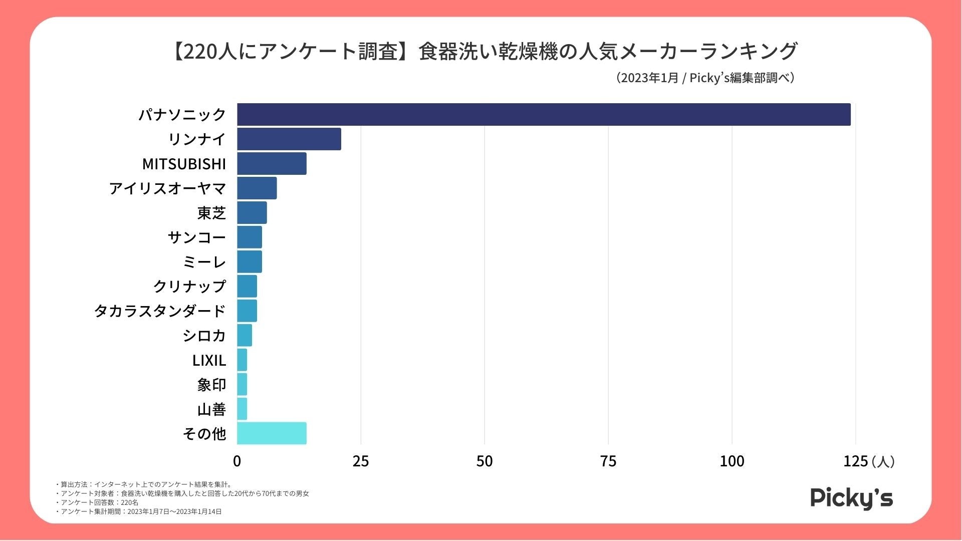 「Picky’s」は、インターネットショッピングにおいて、購入前に試せない・選ぶべきものがわからないという課題の解決を目標に、あらゆる商品のおすすめランキングや検証レビューを紹介するサイトです。このたびPicky’s(https://rentry.jp/note/)では、食器洗い乾燥機についてインターネット上でアンケート調査を行いましたので発表いたします。