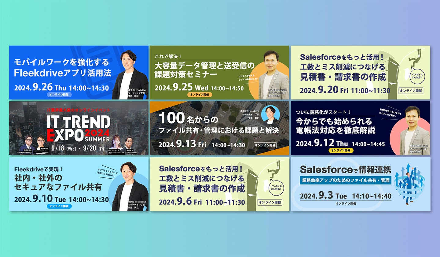 企業向けオンラインストレージ「Fleekdrive」、クラウド帳票サービス「Fleekform」を提供する株式会社Fleekdriveは、9月に以下のセミナー開催を予定しています。