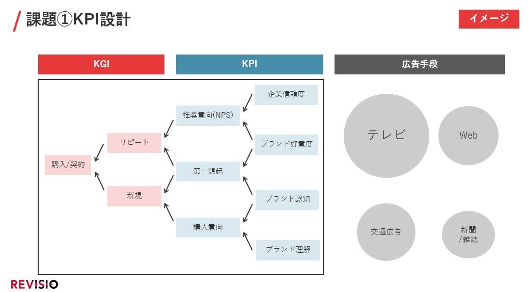 REVISIOでは、マーケティング戦略の策定から、KPIの定点観測の仕組みづくりのサポートも実施。統合マーケティング活動におけるKPIの策定から定点観測の仕組みづくりをサポートします。