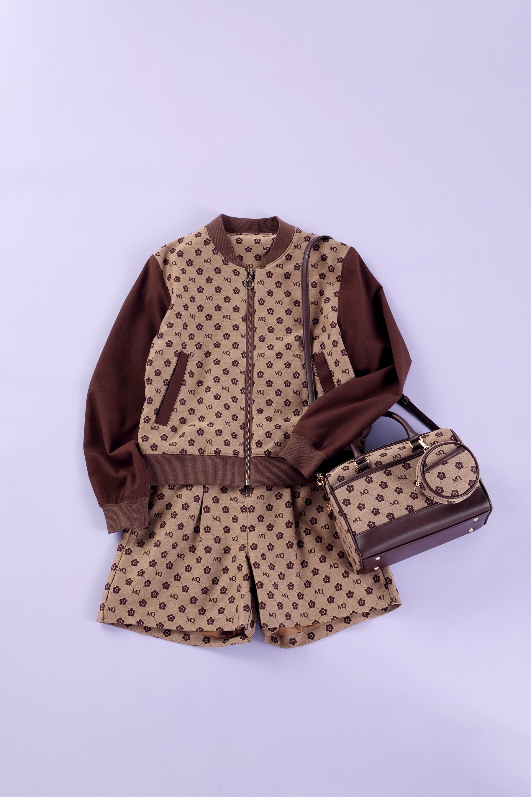 オリジナルのモノグラムが目を惹く、マニッシュな雰囲気のブルゾン&パンツ。