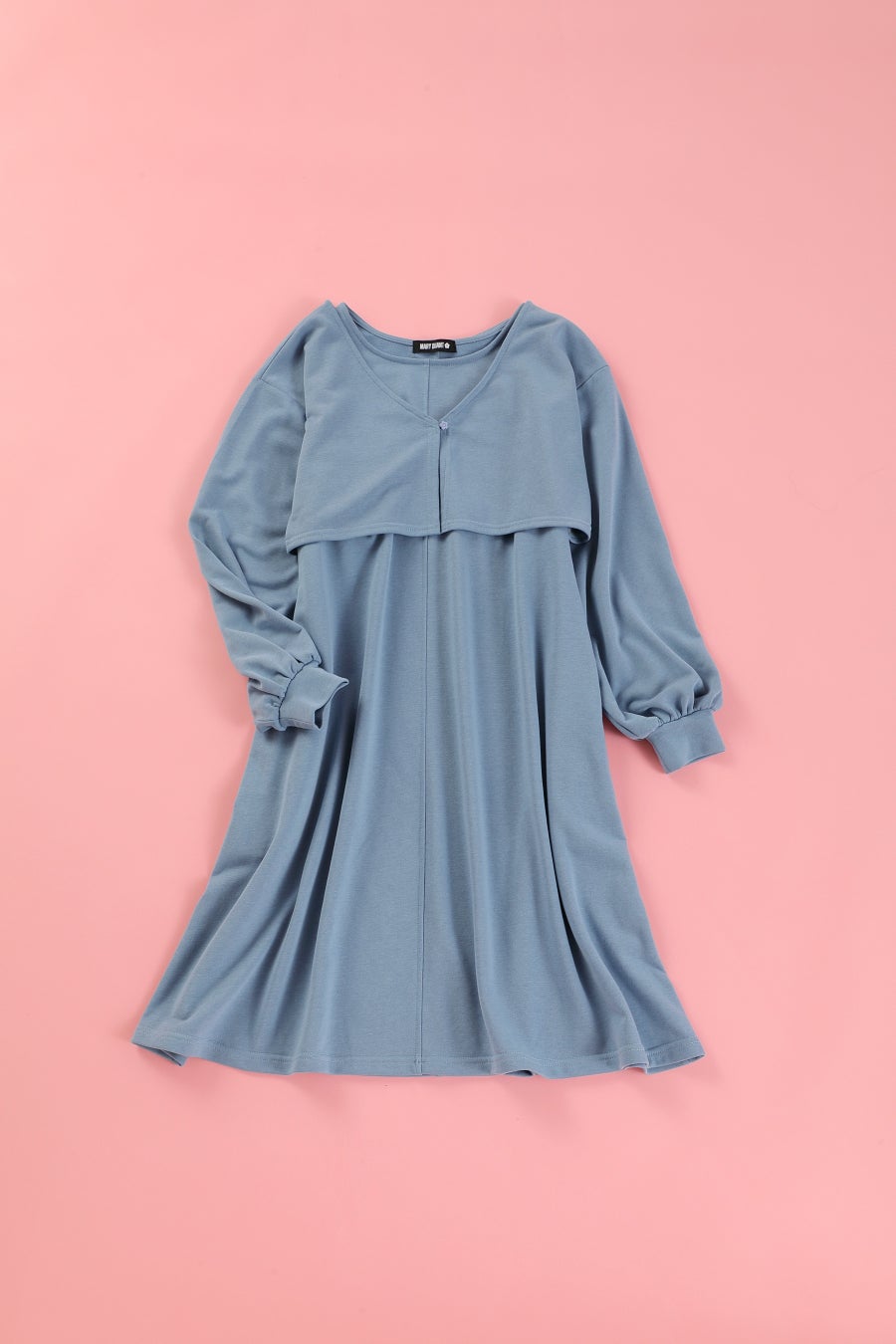 ノースリーブワンピとボレロ風トップスがセットになったワンピース。