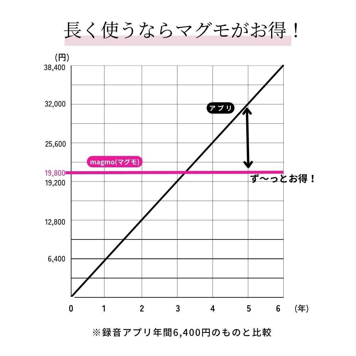 スマートフォンの通話を録音する場合、サブスクリプション制のアプリがありますが、ランニングコストがかかるので、長く使う場合には、断然マグモがお得です!