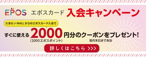キャンペーン内容:たまルンモール(https://mall.tamarun.jp)の以下のバナーからエポスカードを申込みいただいたお客様にたまルンモールで利用できるエポスポイント2,000円分をプレゼントします。
