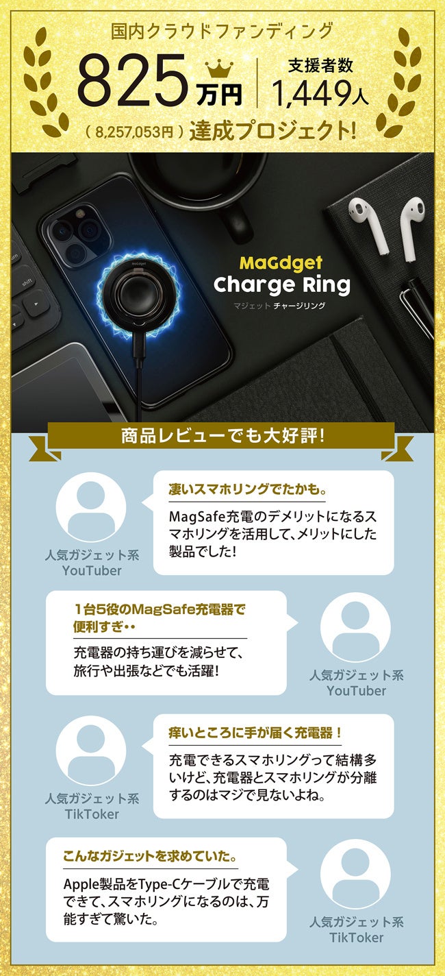 国内クラウドファンディング 825万円達成プロジェクト「MaGdget Charge Ring」がリスタート!