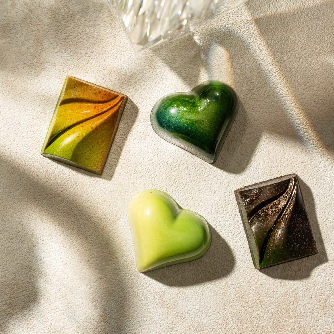 今回販売を開始する「ショコラ イル・パラッツォ 2025 Summer」 には、夏らしさをたっぷり詰め込んだ4種をひと箱に収めました。それぞれ異なる個性をもつ4粒を通じて、味わいはもちろん、香りや見た目、音、舌触りにいたるまで、五感すべてに響くよう丁寧に仕立てています。
