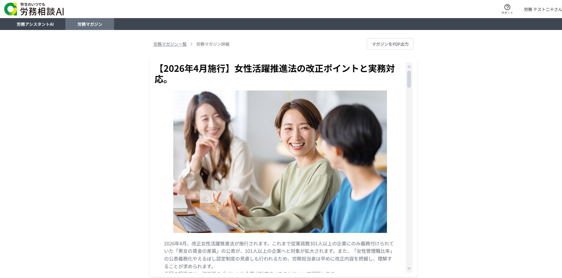 労務担当者向けに、法改正や実務のポイントを解説する記事を定期的に配信し、知識の向上を支援します。