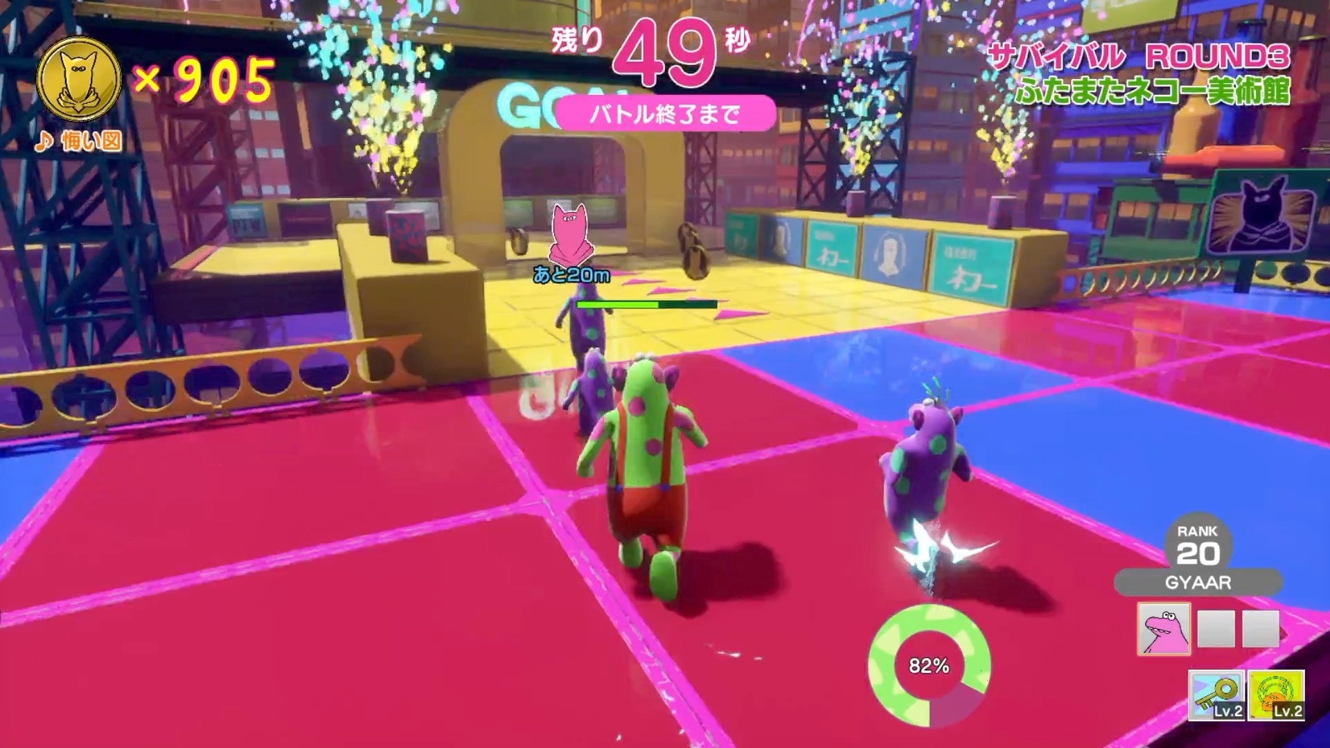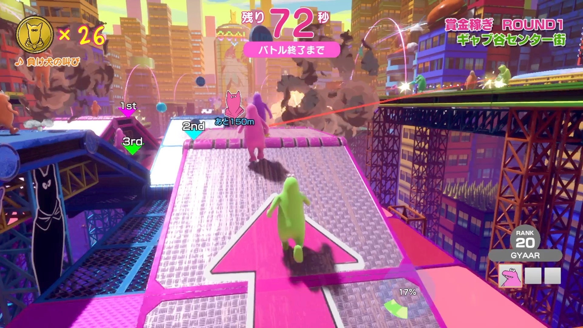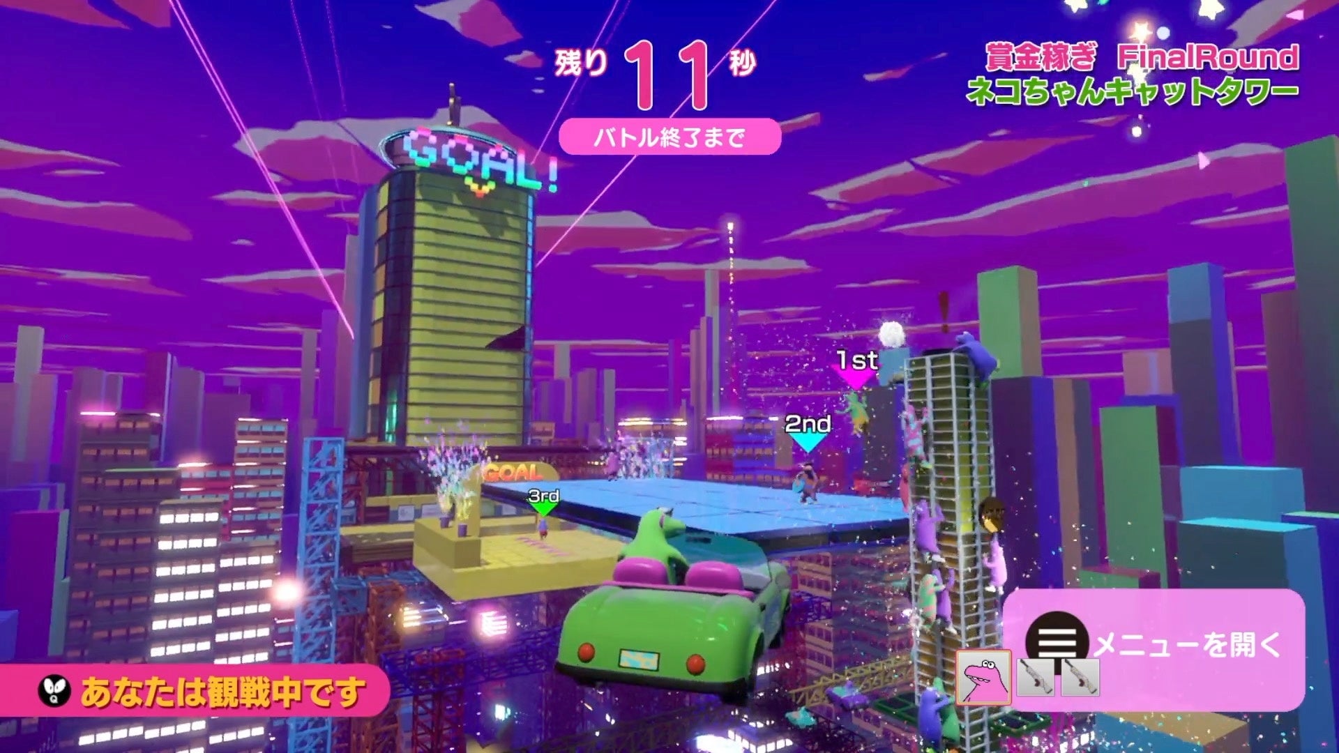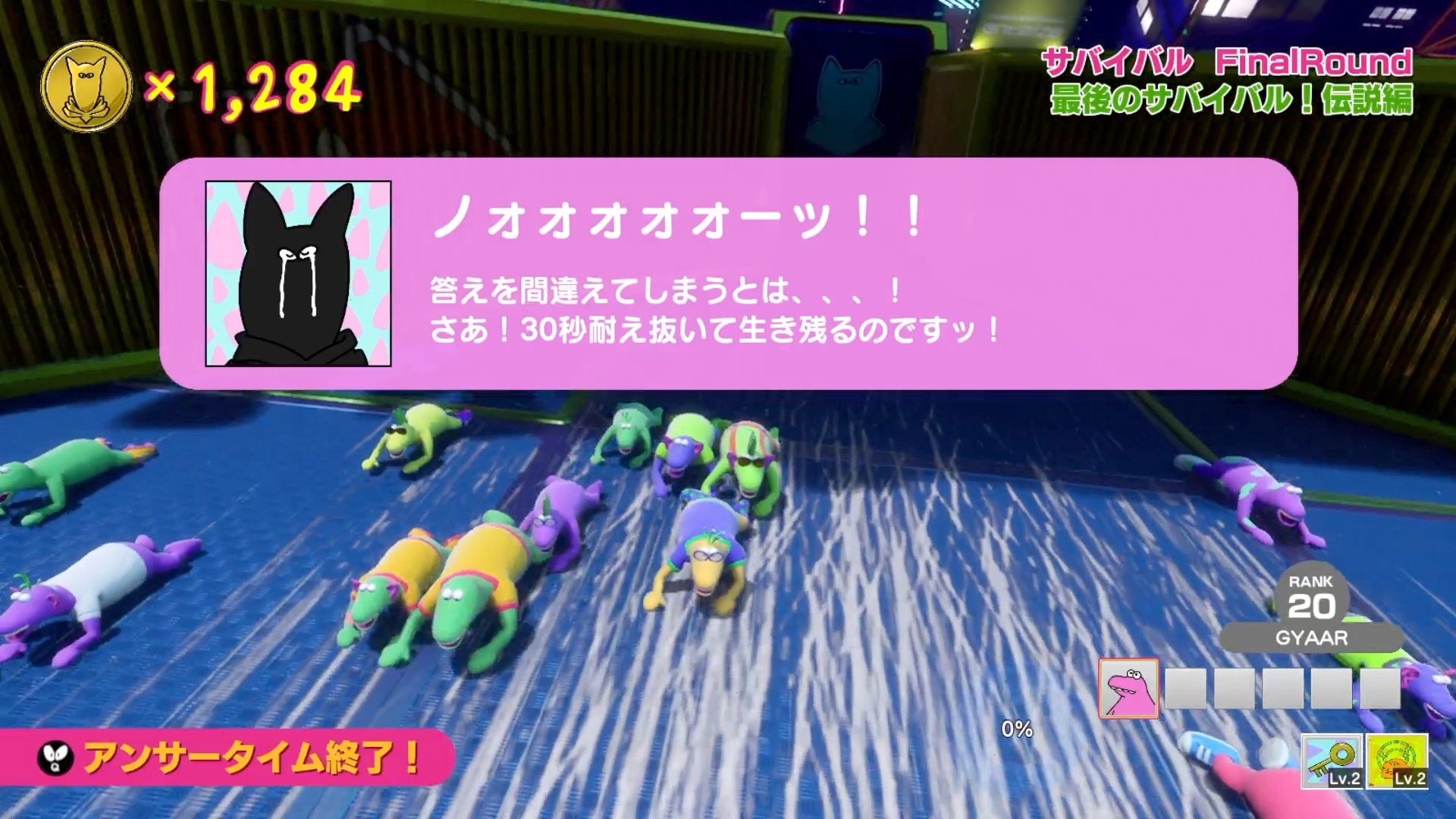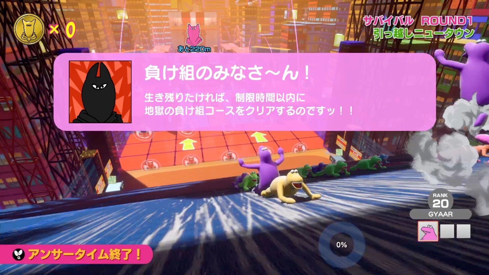 脱落はなく、全員が全ラウンドをプレイします。ただし、制限時間内にゴールに辿りつけなかった負け組のプレイヤーはせっかく稼いだコインを失ってしまうので要注意。