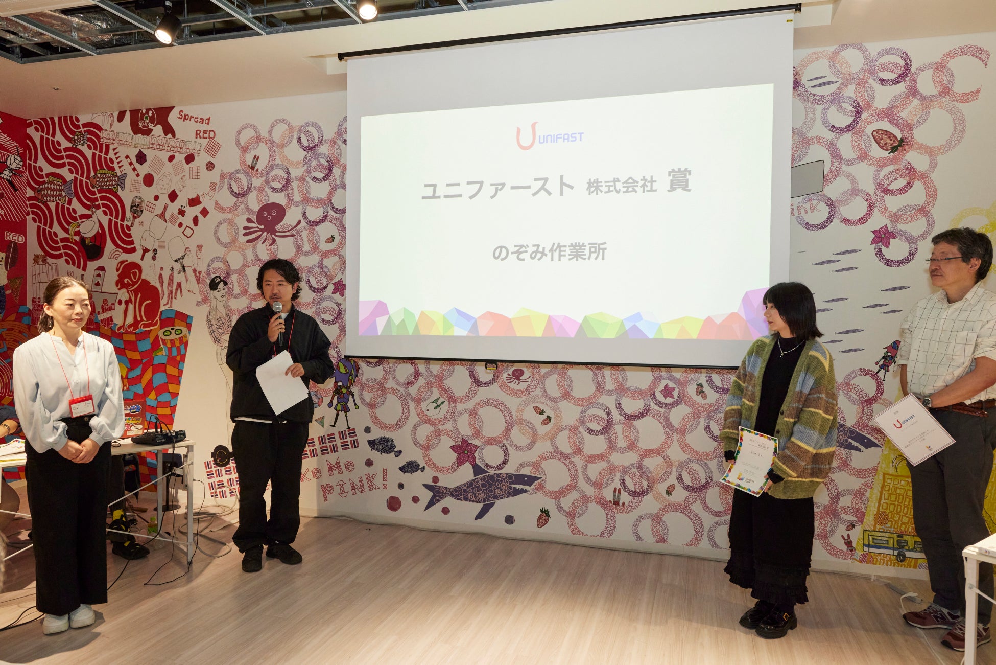 4年連続で『シブヤフォント新作フォント&パターン発表会』の審査員を務める のぞみ作業所の作品『踊る音符』を「ユニファースト賞」に選出