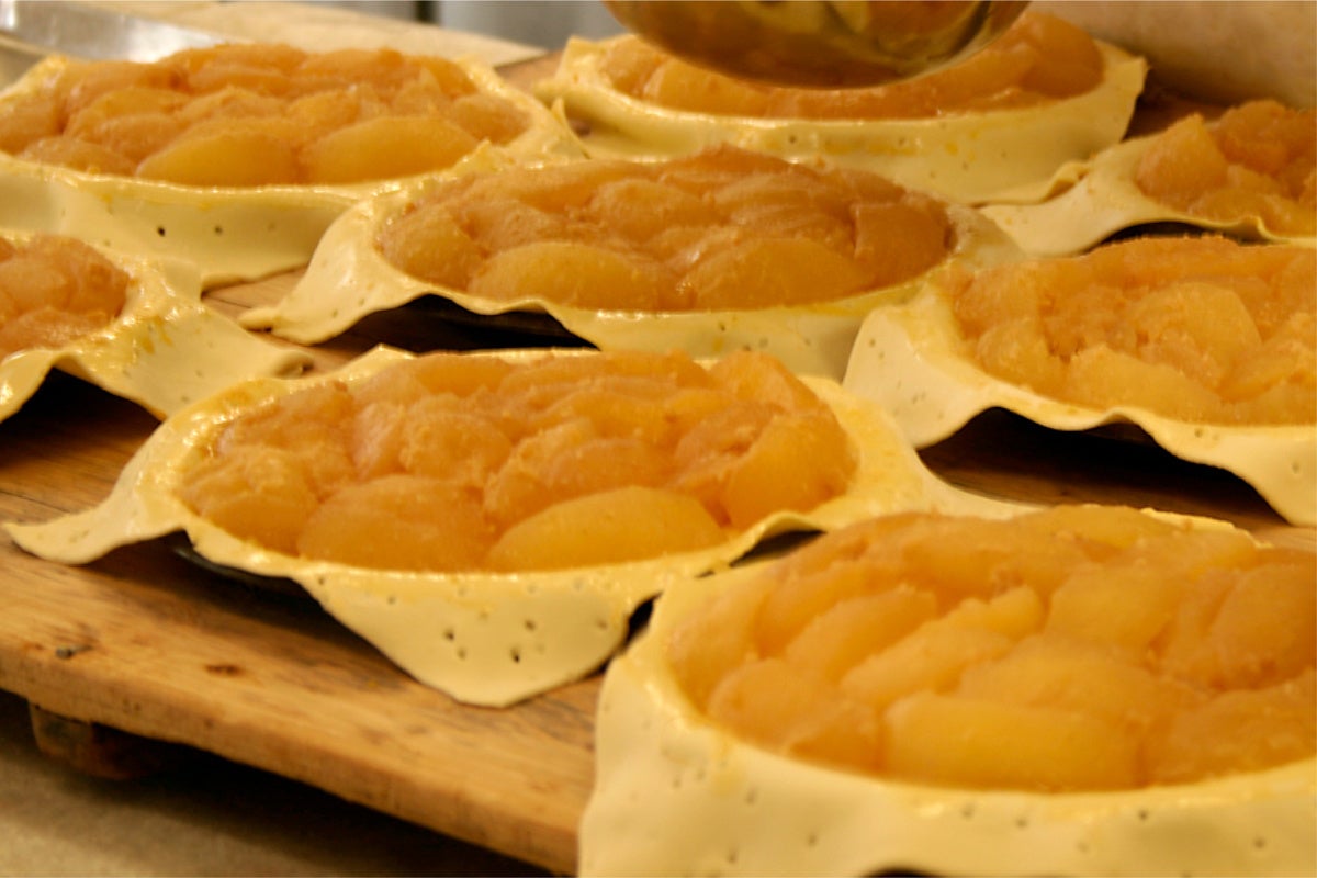 フレッシュバターたっぷりの香ばしいパイ生地は、その風味を生かすため、先代から受け継がれた独自の製法で、職人がひとつひとつ丹念に手で折り込んでいます。