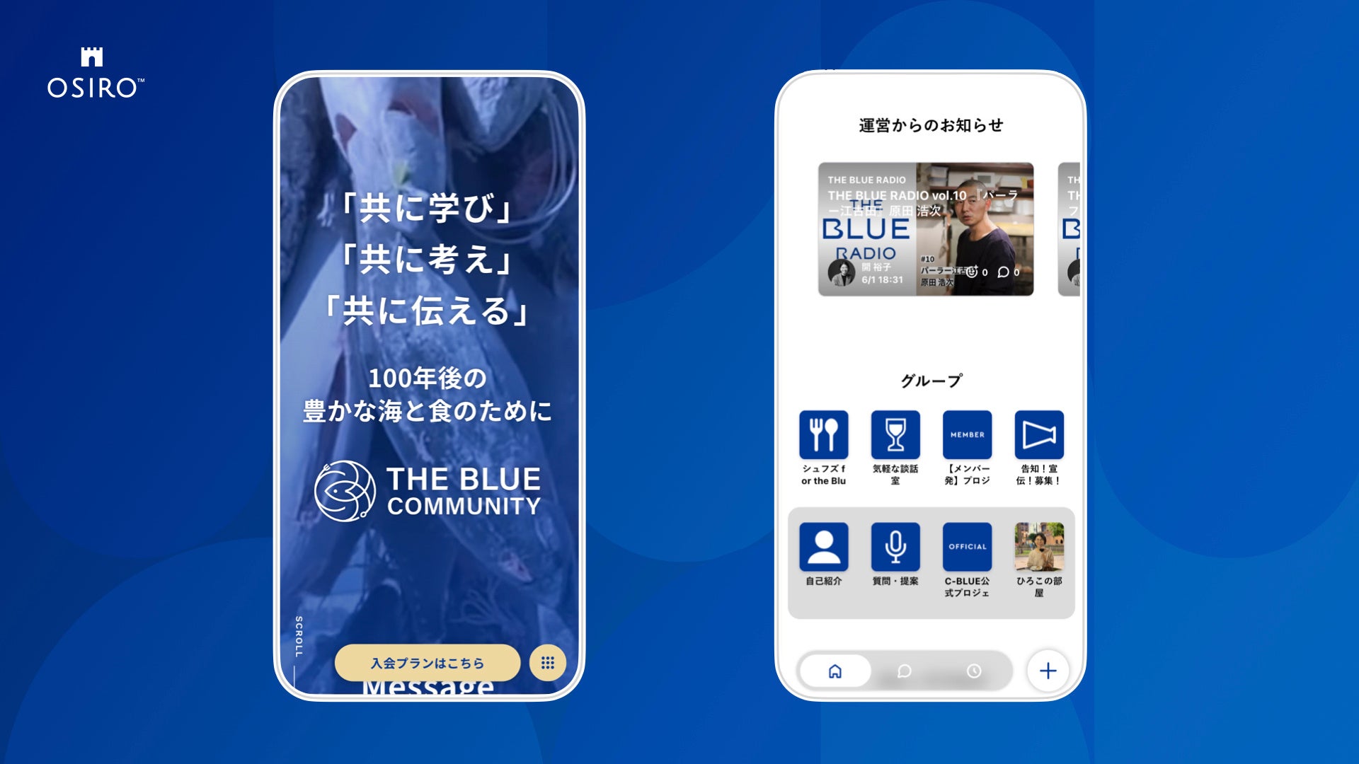 コミュニティ専用オウンドプラットフォーム「OSIRO」を提供するオシロ株式会社(本社:東京都渋谷区、代表取締役社長:杉山 博一、以下 当社)は、一般社団法人Chefs for the Blueに「OSIRO」の提供を開始いたしました。2024年7月3日オンラインコミュニティ「THE BLUE COMMUNITY」のリニューアルオープンに伴い、2024年6月15日より事前募集が開始されています。オンラインコミュニティ「THE BLUE COMMUNITY」を通じ、「100年後の豊かな海を作る」というパーパスの実現や海のサステナビリティの推進を支援します。