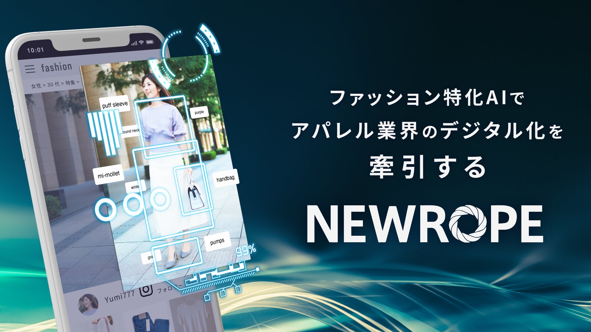 ニューロープは、独自開発の画像認識AI(人工知能)をコア技術とした、アパレル関連企業向けのバーティカルSaaSサービスを展開するスタートアップです。AIは6か月先のトレンド分析事業やECサイト向けのリコメンド事業に応用可能で、このAI技術により、アパレル業界を持続可能なモデルに導くデジタルインフラとなることを目指します。