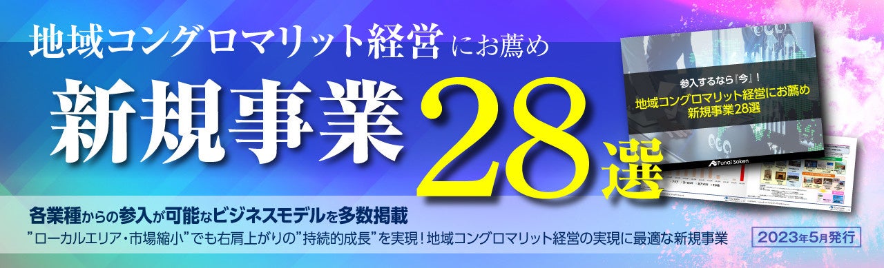 参入するなら今!「地域コングロマリット経営にお薦め 新規事業28選レポート」を無料で公開
