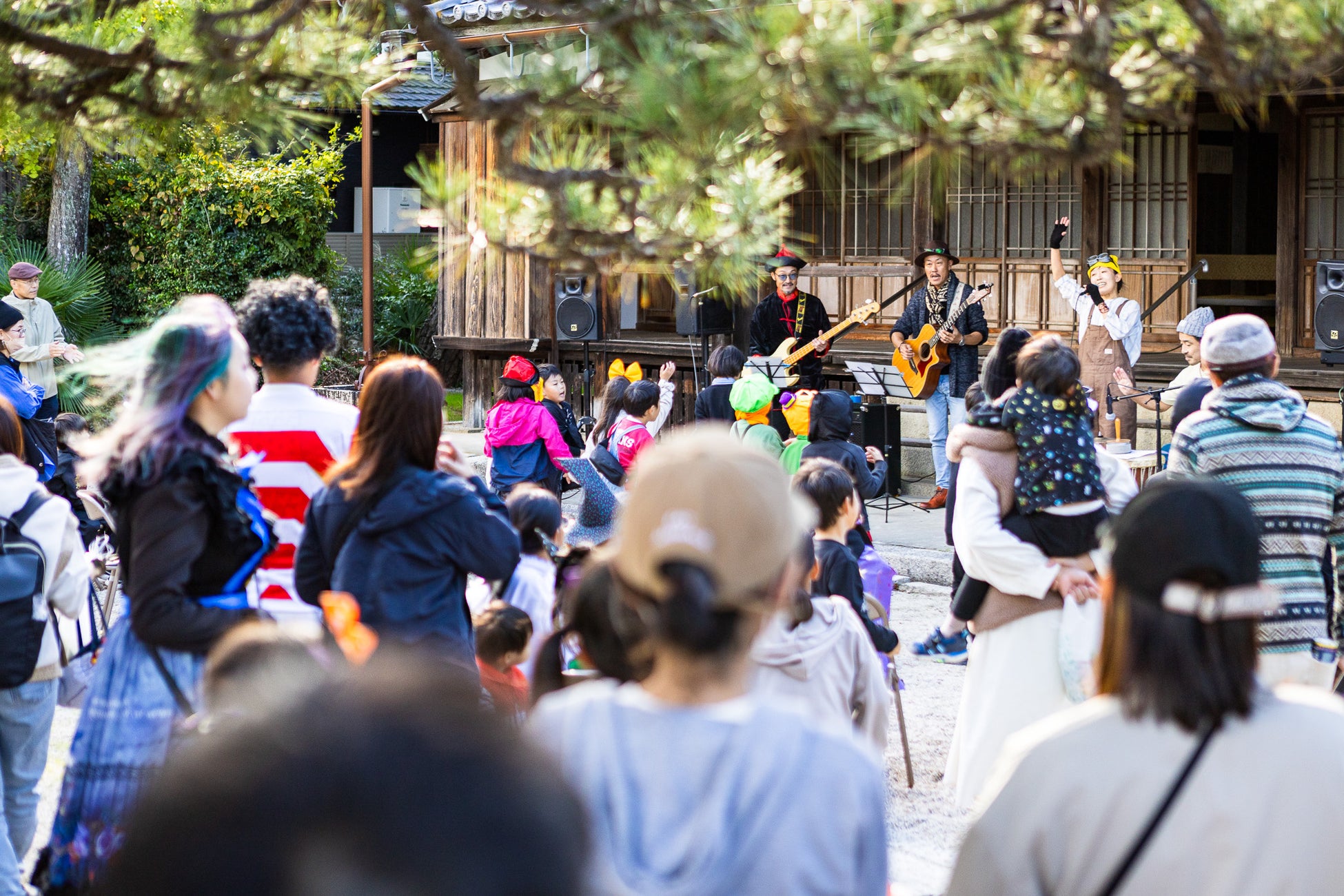 大溝陣屋総門をメイン会場に、旧大溝地区一帯を会場とした地域住民が主催するマルシェです。42店舗が出店され、地域住民や出店者が自分たちで地元の魅力を発信し、地域活性化を図ることを目的としています。当日は、地域住民が企画した催しが多数実施。お寺の境内を開放し、高島名物の茶菓子が味わえる「お寺カフェ」。地元の子ども会が出店する「縁日あそび」。さらに飛び入り参加OKで、仮装をして街を探検する「ハロウィン行列」などが開催されます。