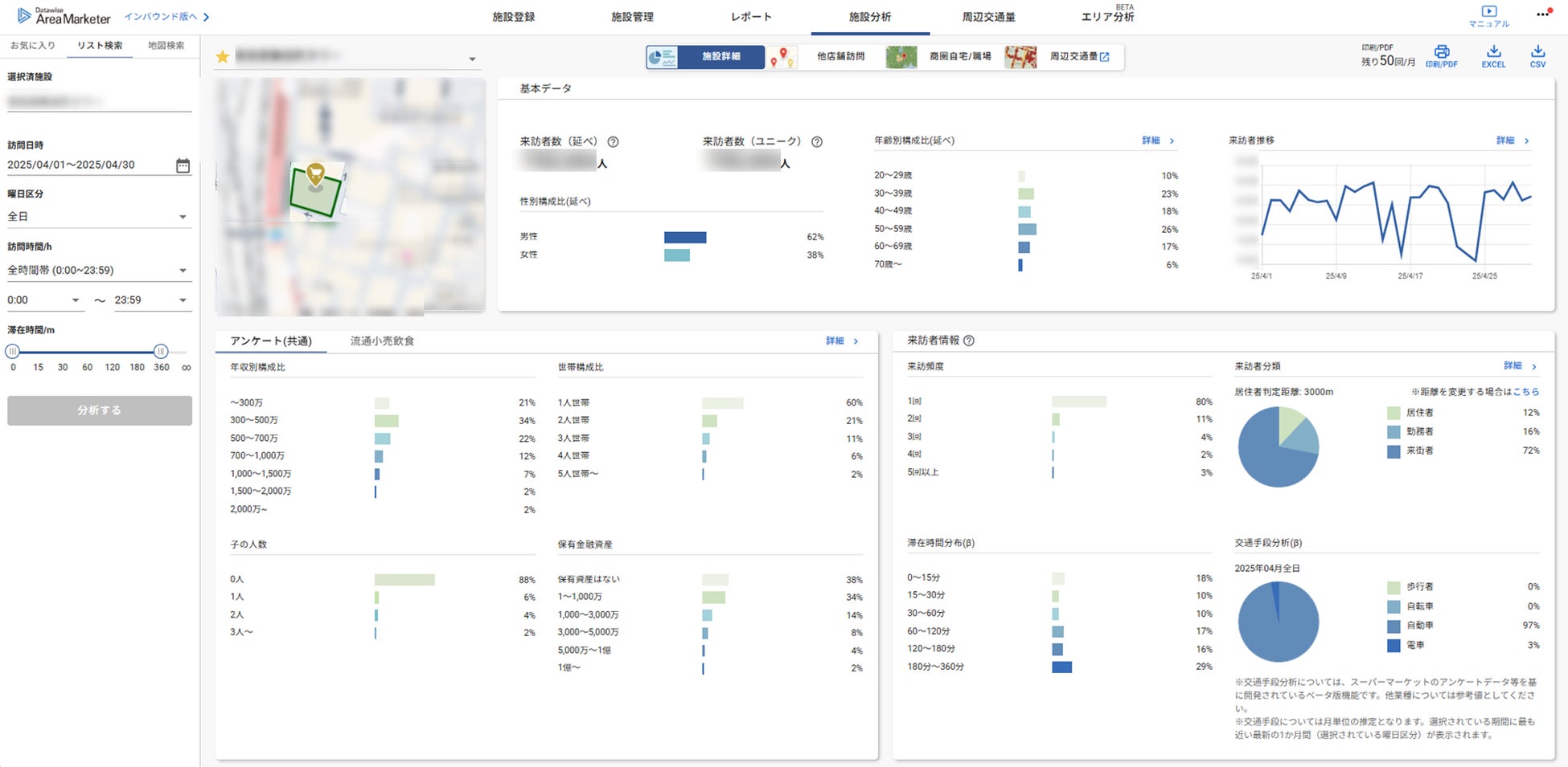 ドコモGPS統計データを活用した商圏・人流分析ツール Datawise Area Marketer は、2021年3月のリリース以来、おかげ様で多数のスーパー様、ドラッグストア様、アパレルショップ様、ホームセンター様、カフェチェーン様、飲食チェーン様(ぜひ弊社HPの採用企業様ご紹介ページ https://www.datawise.co.jp/case をご覧ください。)にてご導入いただき、新規出店の候補地の分析や、既存店や競合店を含めた分析など、幅広いマーケティングにお役立ていただいております。