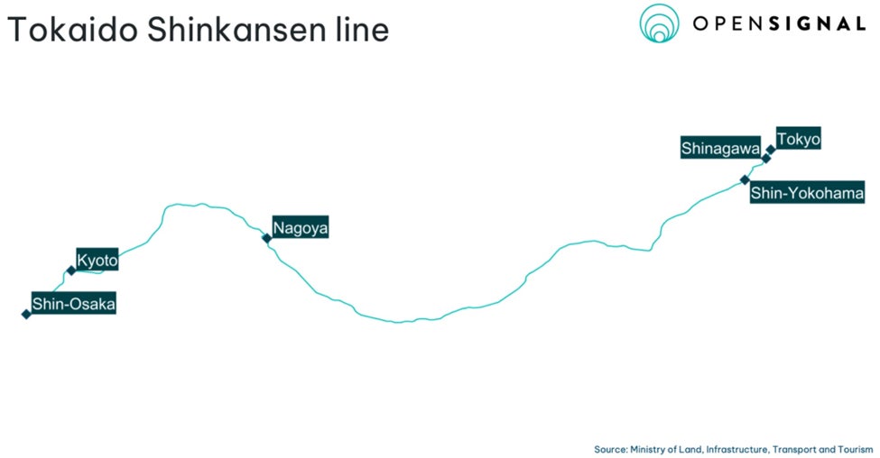 Opensignal(本社:ロンドン)は、、東海道新幹線周辺におけるモバイルネットワークの状況を分析したレポートを発表しました。東海道新幹線は、日本を代表する高速鉄道路線であり、東京と大阪を約2時間半で結んでいます。Opensignalは、この路線沿線のユーザーのモバイル・ネットワーク体験を分析し、以下の結果を得ました。