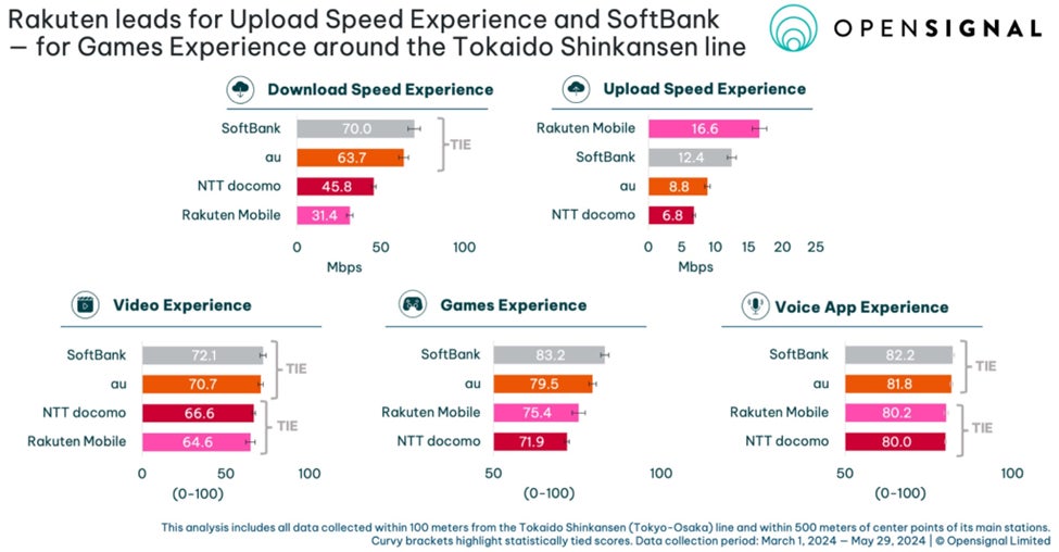 ● ソフトバンクは、東海道新幹線周辺のゲーム・エクスペリエンスで1位を獲得しました