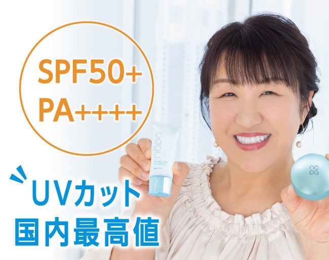 お肌の負担を考え紫外線吸収剤を使わず、紫外線散乱剤のみで国内最高値 SPF50+PA++++のUVカットを実現しました。さらに、nopaはウォータープルーフなので汗をかく夏の時期だけでなく、まだまだ続くマスクによるメイク崩れの強い味方。