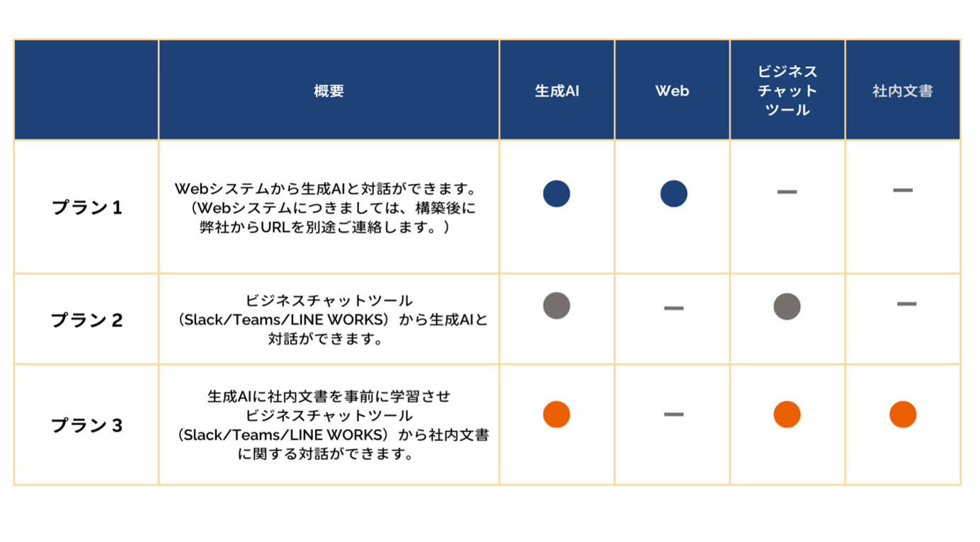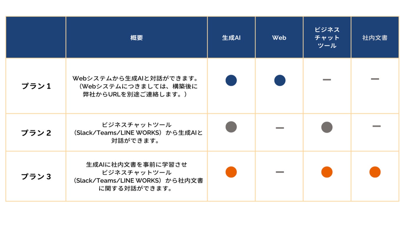 本サービスでは3つのプランを提供しており、「プラン3」には「プラン2」の機能も含まれます。