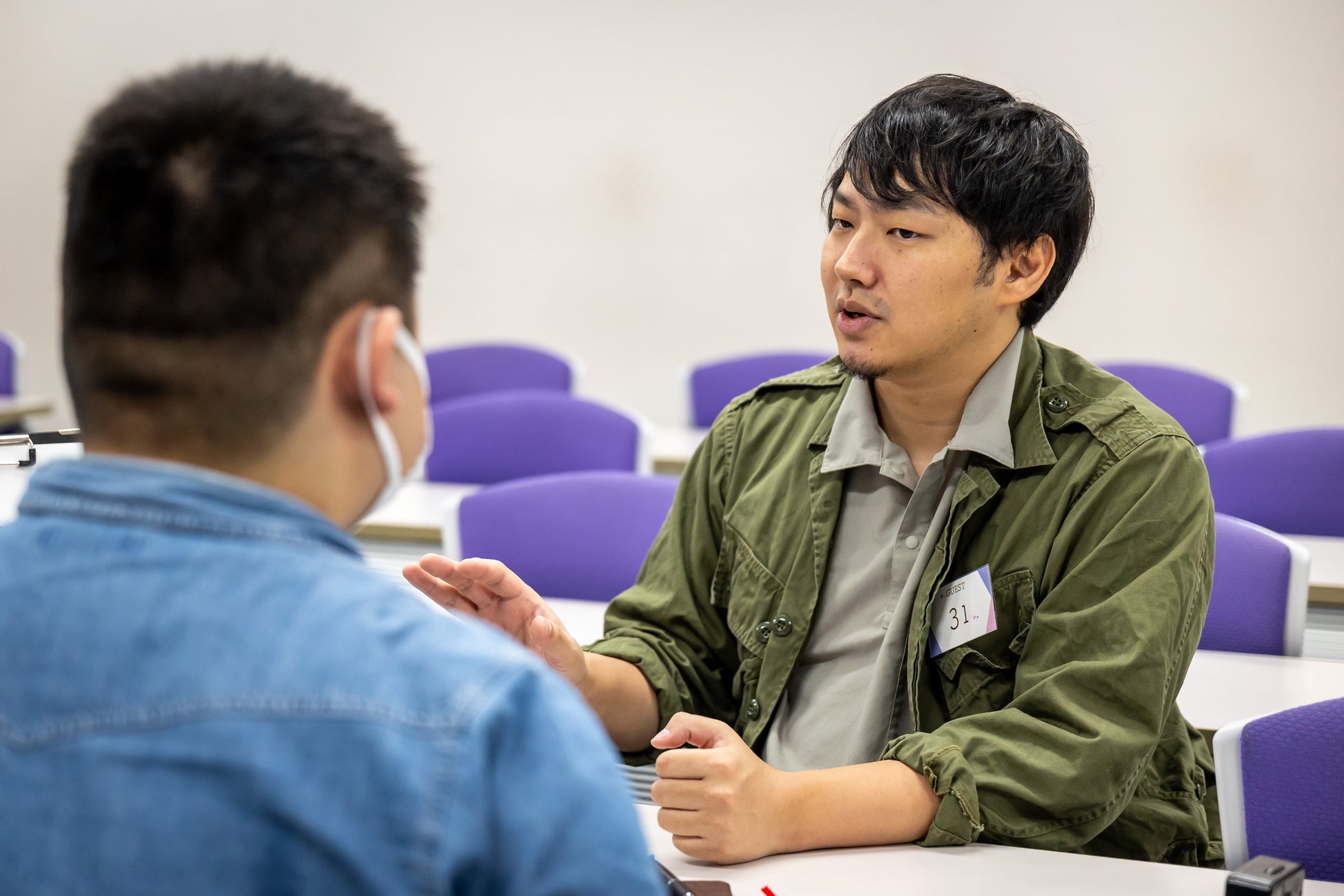 「創作を生活と切り離さず、環境そのものが作品の質を押し上げる」という考え方に、多くの学生がメモを取りながら聞き入っていました。