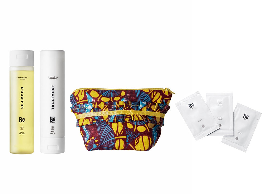 Beのスキンケアアイテムやヘアケアアイテムと色彩豊かなアフリカンプリントのアイテムが、忙しい毎日を彩ります。