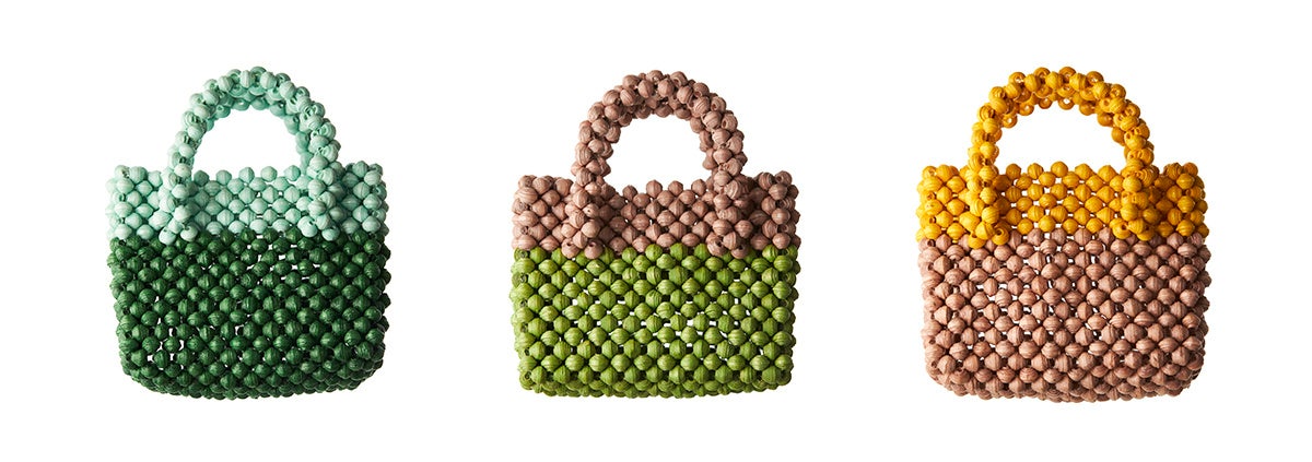 RICCI EVERYDAYの鮮やかなツートーン配色が目を引く、ペーパービーズ・カラフルバッグチャームをセットでご用意。