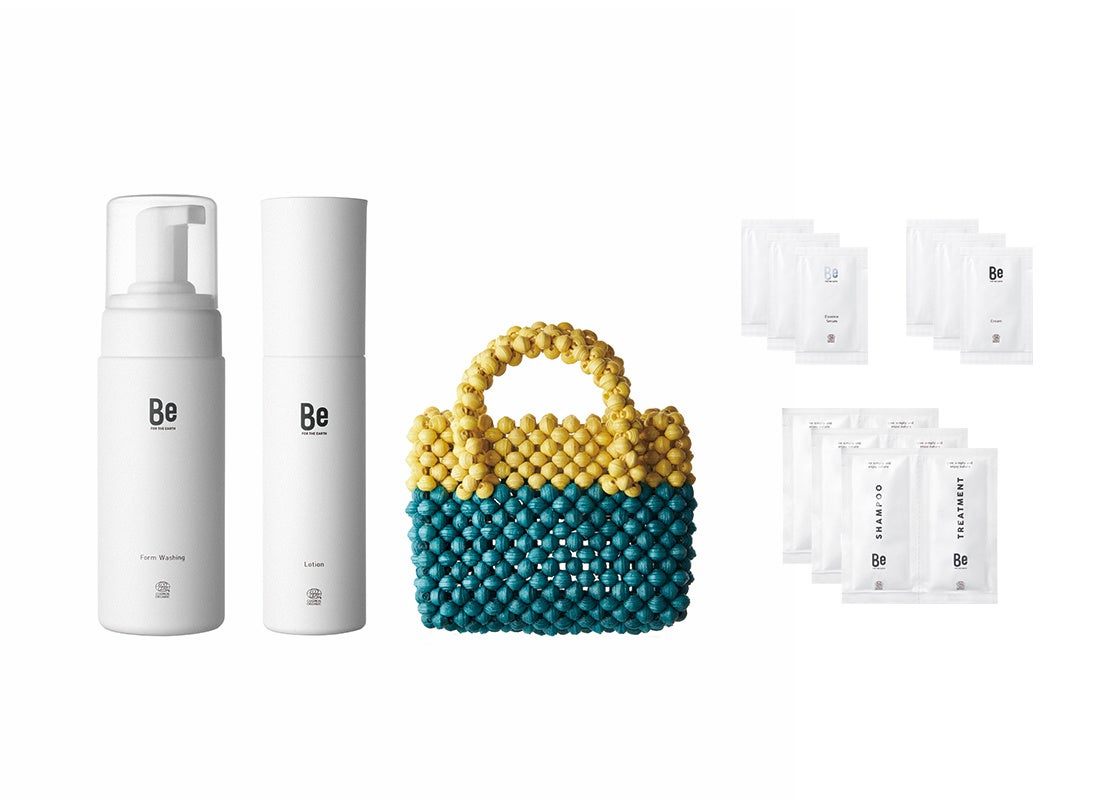 ふんわりと弾力のある泡が肌を包み込み、毛穴汚れや余分な角質をやさしく洗い流すアミノ酸系の洗顔料「Beフォームウォッシング」と、乾燥によるキメの乱れやくすみ、ハリやツヤのない肌を、瞬時にみずみずしい潤いで満たす保湿化粧水「Beローション」、スキンケアサンプル2種類各3個とヘアケアサンプル3回分のセット。