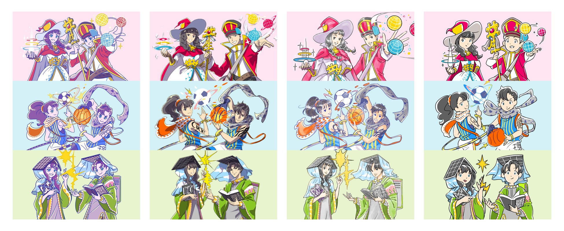 変更できるデザインは全4種展開されており、当社が持つ30年間にわたるイラスト制作のノウハウを活かし世代ごとに親和性が高いテイストで制作を行いました。